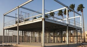 - Hybrid structures integrate steel primary framing with insulated sandwich panels, polyurethane foam cores, or precast concrete elements, specifically engineered for the UAE’s extreme heat to enhance thermal insulation and energy performance.